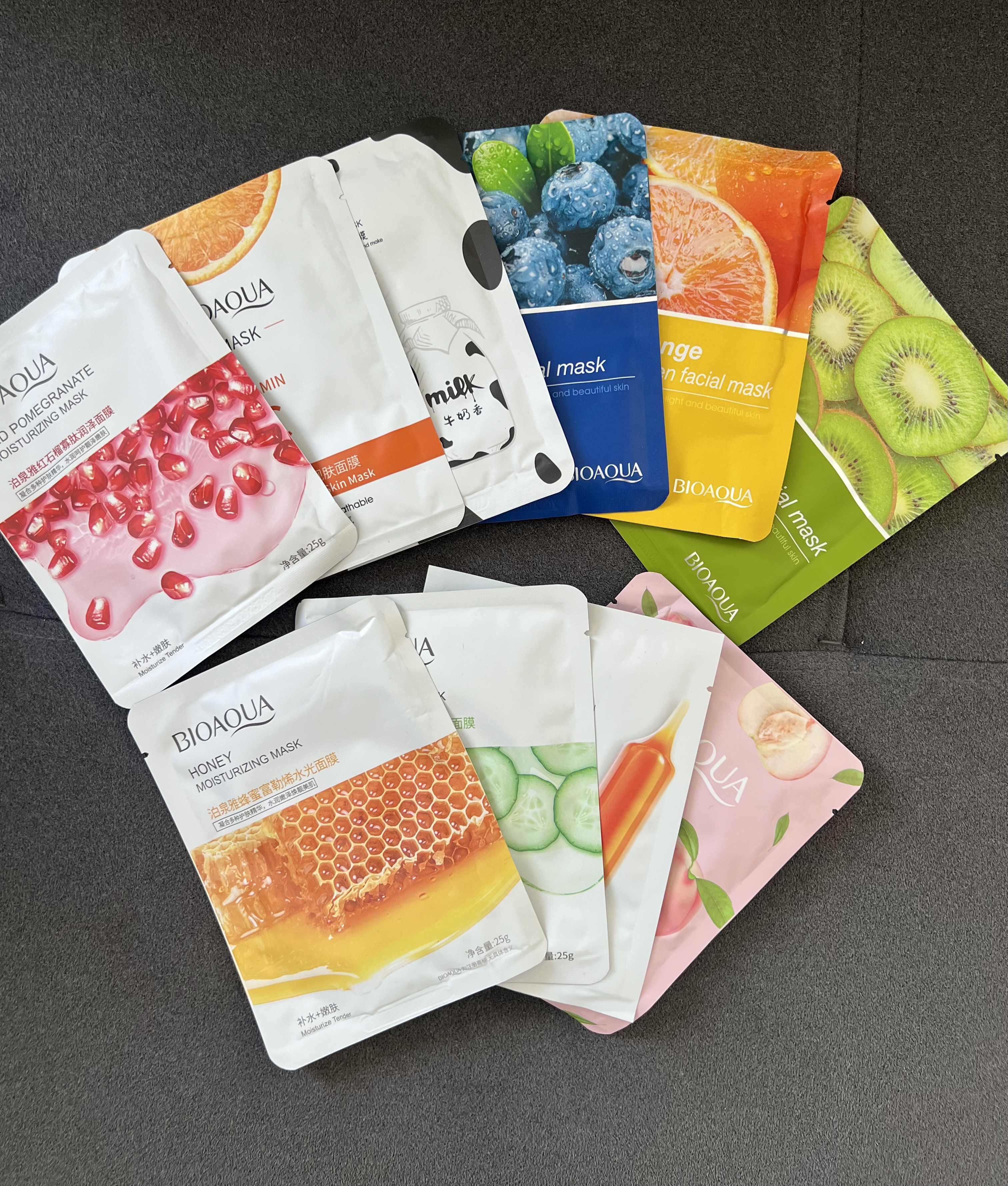 در این پک به صورت رندوم ۱۰ عدد ماسک ورقه ای مختف از بهترین برندها برای شما ارسال می شود. ماسک ورقه ای چیست؟این ماسک های ورقه ای همچنین حاوی مواد مرطوبکننده، آرامشبخش، ضد التهاب و تغذیهکننده برای پوست هستند و با قرار گرفتن روی صورت، مواد موجود در ماسک به پوست جذب شده و باعث تغذیه، نرمی، لطفات و رطوبت پوست صورت میشوند. این نوع ماسک به پاکسازی صورت کمک میکند.